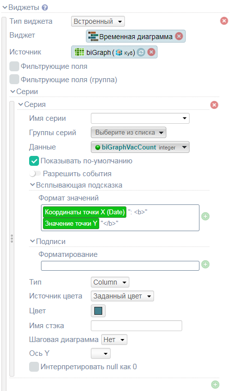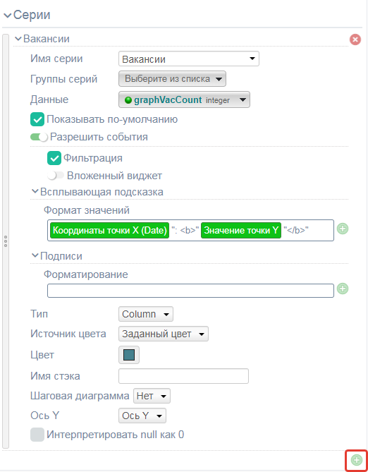 Для добавления виджета Временная диаграмма Вакансии по дням: