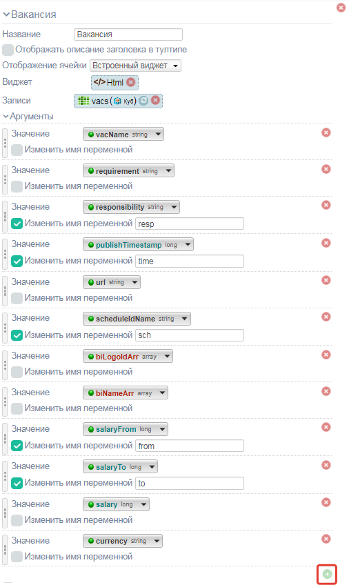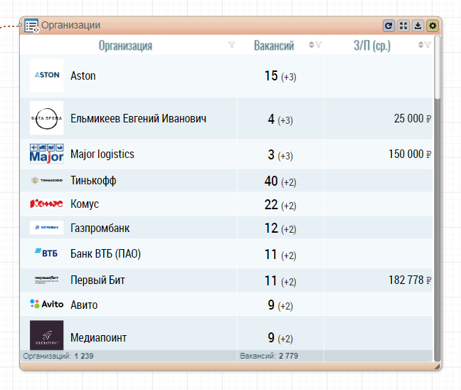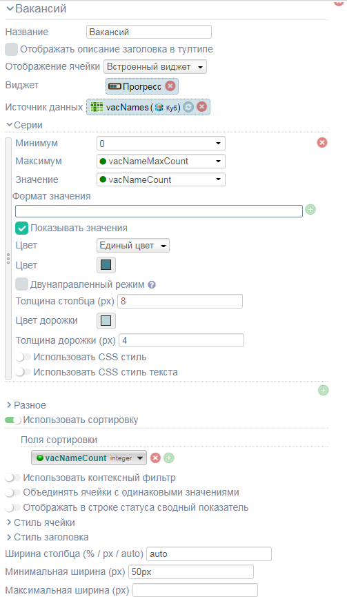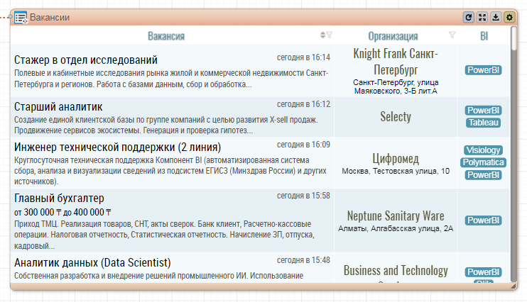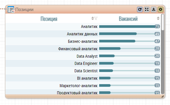 В результате будет сформирован виджет Таблица Вакансии (рис. 8.3.4.1.7).
