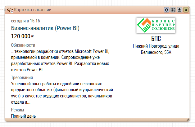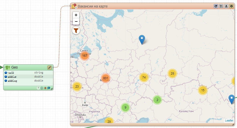 В результате будет сформирован виджет Карта Вакансии на карте (рис. 8.3.1.3).