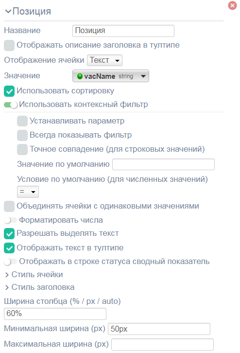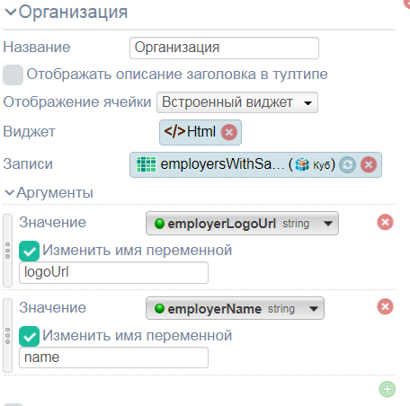 переименуйте второй столбец в “Организация” и настройте параметры согласно рис. 8.3.4.1.5;