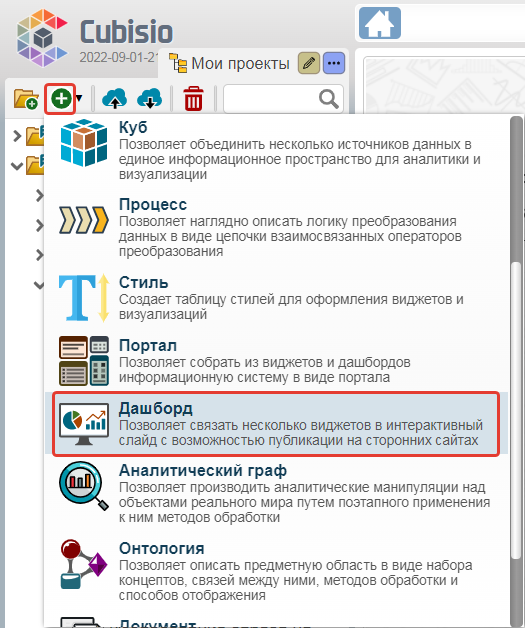 В области ведения проекта появится значок Дашборда (переименуйте его в “Исследование спроса на аналитиков в разрезе BI инструментов”).
