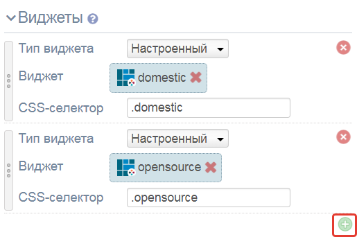 - в блоке Виджеты добавьте 2 виджета нажатием на кнопку + (см. рис. 10.2.1.2):