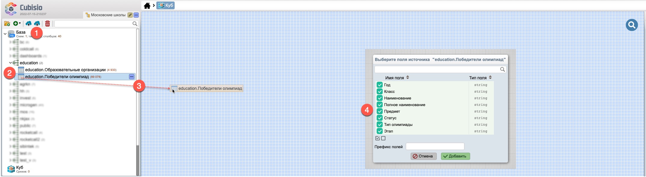 Выберите поля таблицы, которые хотите перенести в куб, проставив галки в чексбоксы (4).