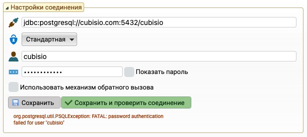 При неправильном вводе имени пользователя и/или пароля при настройке соединения (порядок описан в п. 3.4.1. Настройка соединения с базой данных) появится сообщение: “password authentification failed for user…" (рис. 4.4).